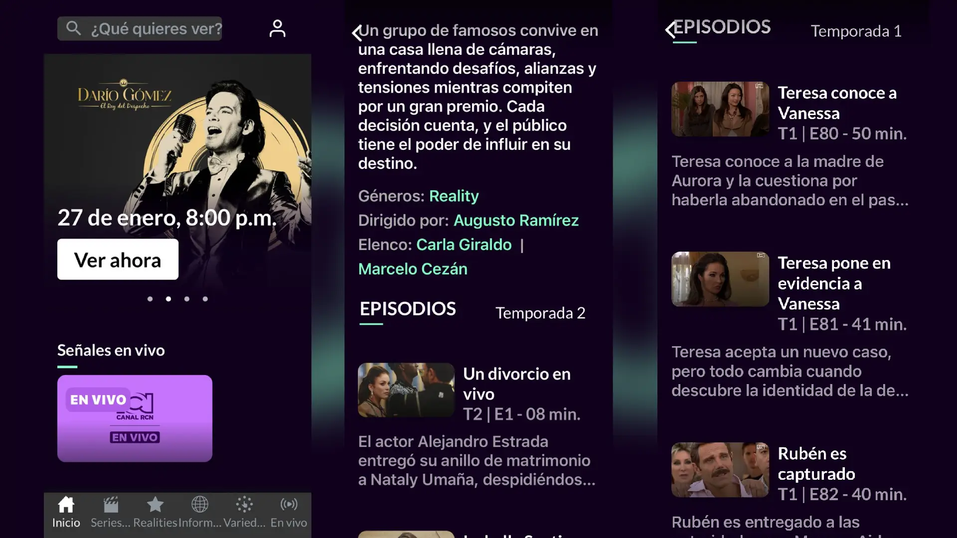 Además de poder ver sus producciones favoritas, tendrá acceso directo a la señal en vivo del Canal RCN y esto ayudará a que pueda conectarse en cualquier momento y lugar con tan solo un clic.