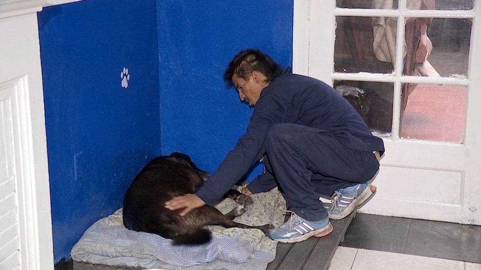 Negro y Wilmar fueron los primeros en llegar al hogar de paso para carreteros y sus animales de compañía instalado por la Alcaldía de Bogotá.