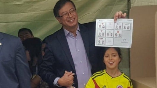 Acompañado de su familia, Gustavo Petro votó en el centro de Bogotá