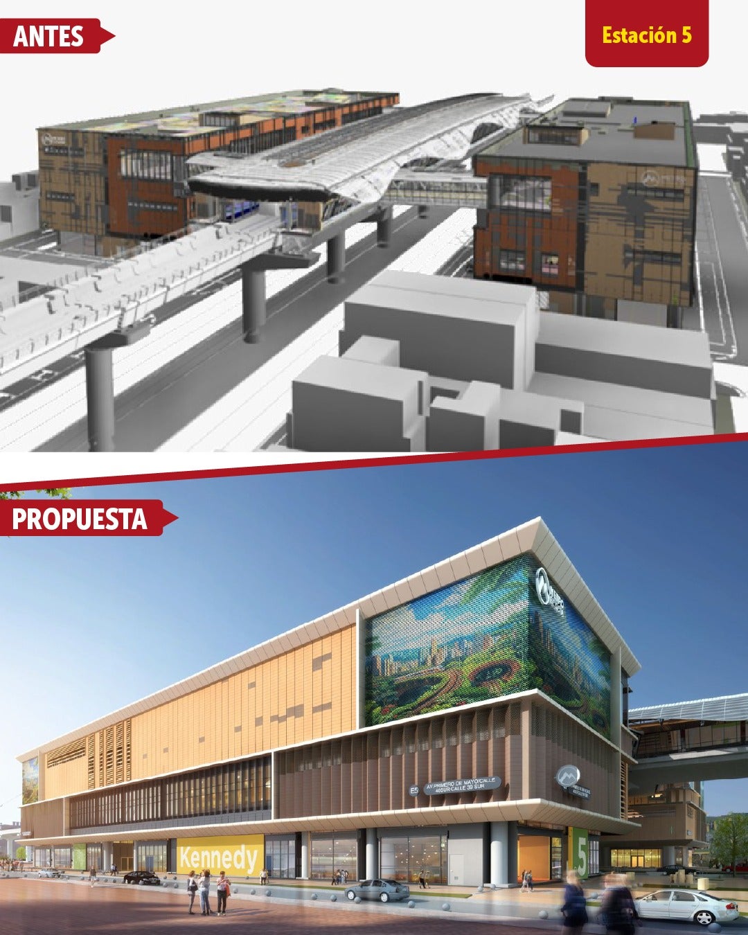 En los nuevos planteamientos se contempló el uso de murales y elementos visuales de gran formato que permitieran que los edificios se integren al entorno y reflejen la identidad de Bogotá.