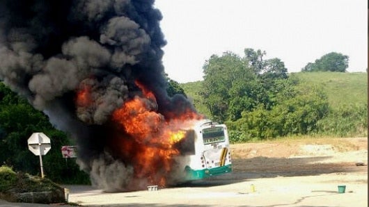 Bus de turismo especial se incendia en la vía Manizales - Medellín