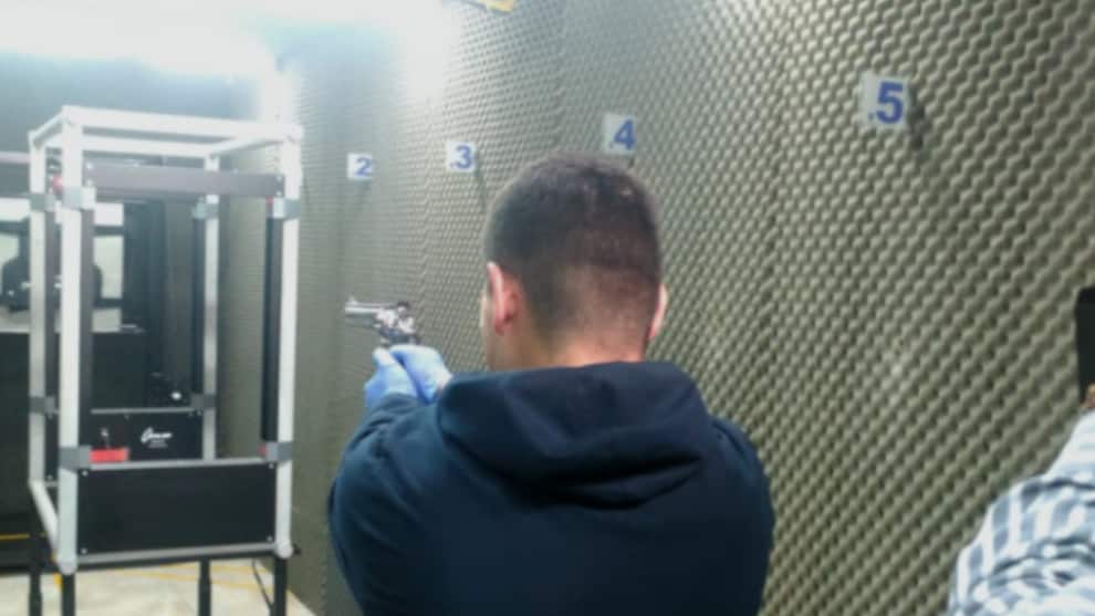 Luego del disparo a quema ropa con una pistola 9 milímetros portando el chaleco blindado es evidente el trauma que deja.