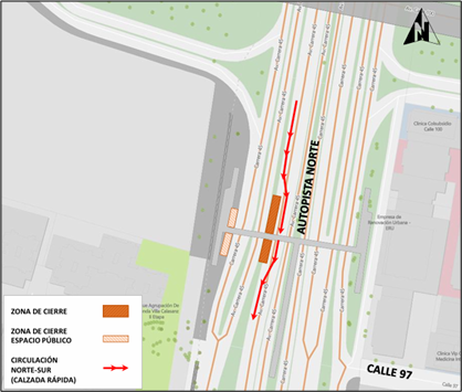 El carril es el que va en sentido norte – sur por la Autopista Norte con calle 97. El cierre es de 24 horas y durará un mes. Para facilitar la movilidad, las autoridades dieron a conocer cuáles son los caminos autorizados.