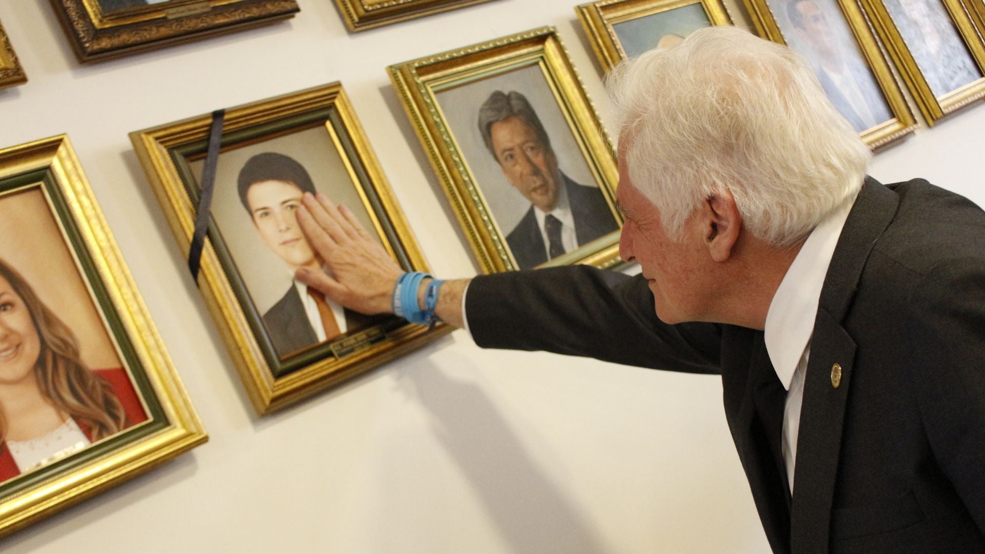 Durante el homenaje, concejales develaron una placa conmemorativa y se hizo la entrega de un pergamino a su padre Miguel Uribe Londoño.