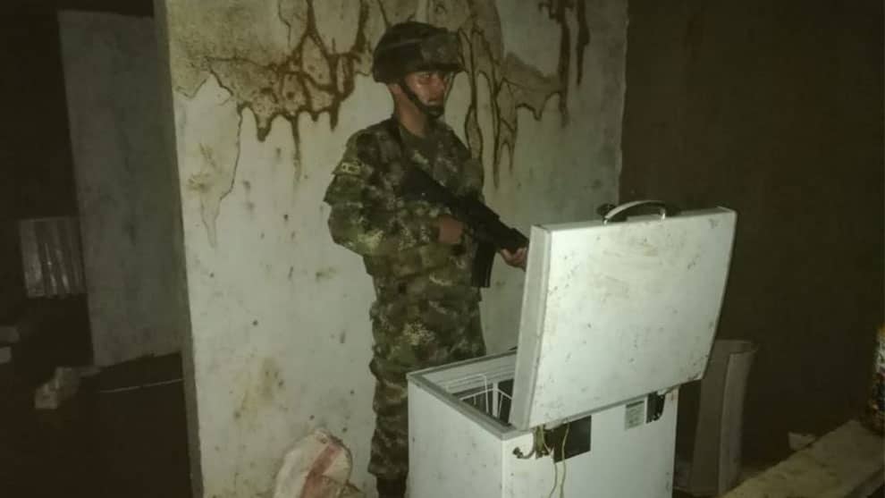 La Fuerza Pública encontró en el interior de la casa dos neveras, empaques de alimentos y materiales de construcción, razón por la cual el Ejército presume que “el sitio ya habría sido usado por los criminales para huir de las diferentes operaciones militares que viene adelantando la Séptima División del Ejército Nacional en esa región”.