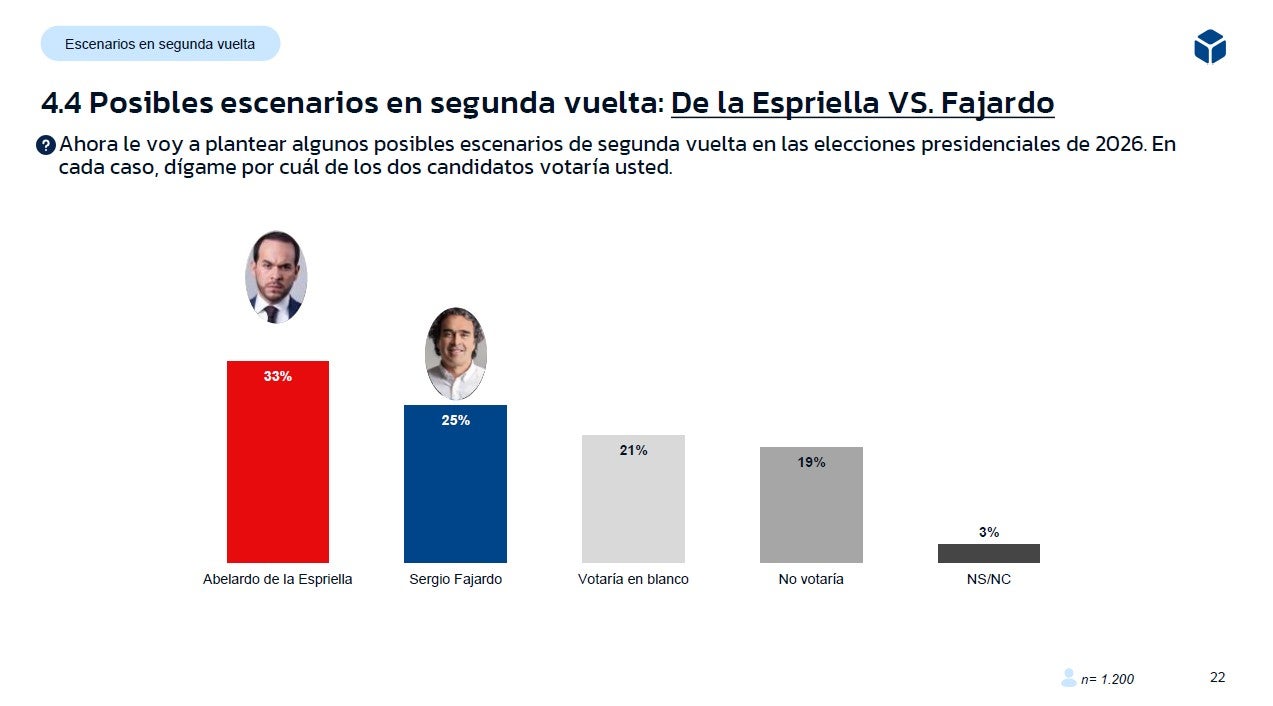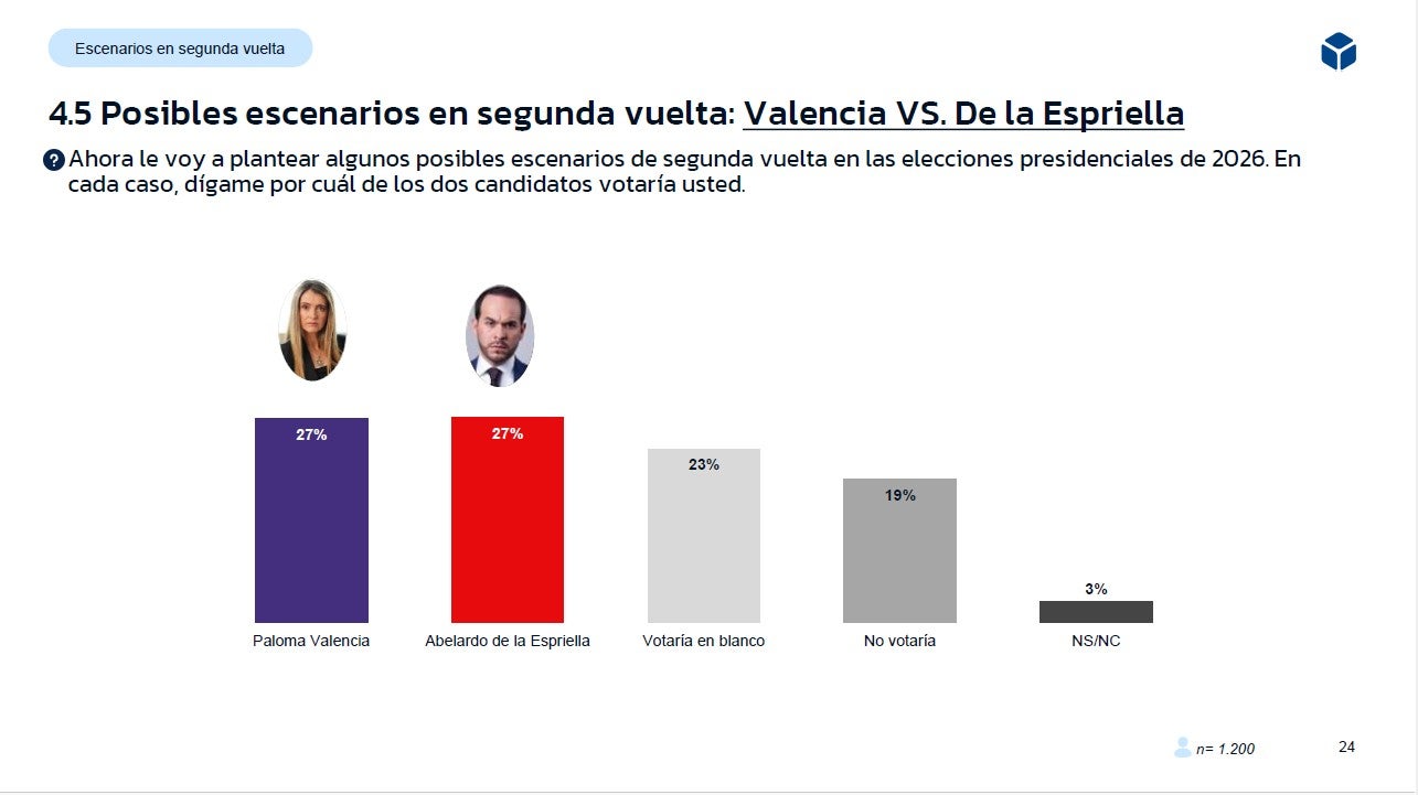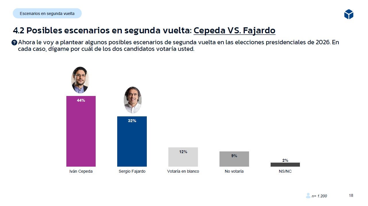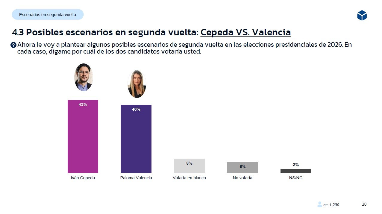 A la pregunta: le voy a plantear algunos posibles escenarios de segunda vuelta en las elecciones presidenciales de 2026. En cada caso, dígame por cuál de los dos candidatos votaría usted.