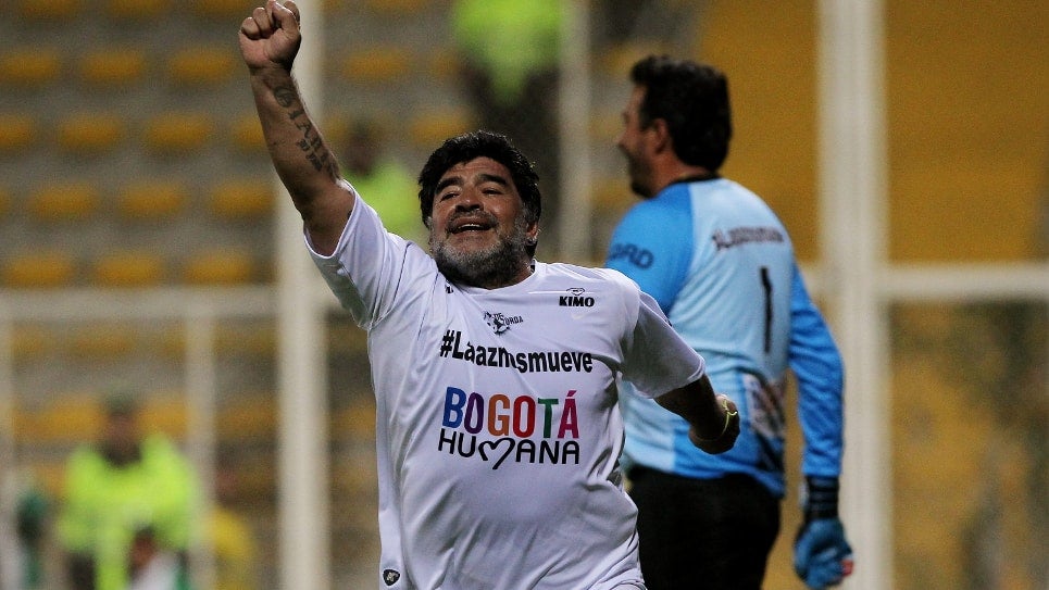 El exfutbolista argentino Diego Maradona es el protagonista de un vídeo que circula hoy en la redes sociales en el que se le ve agrediendo a un hombre que intentaba hacerle una fotografía después del partido por la paz de Colombia que jugó anoche en Bogotá.