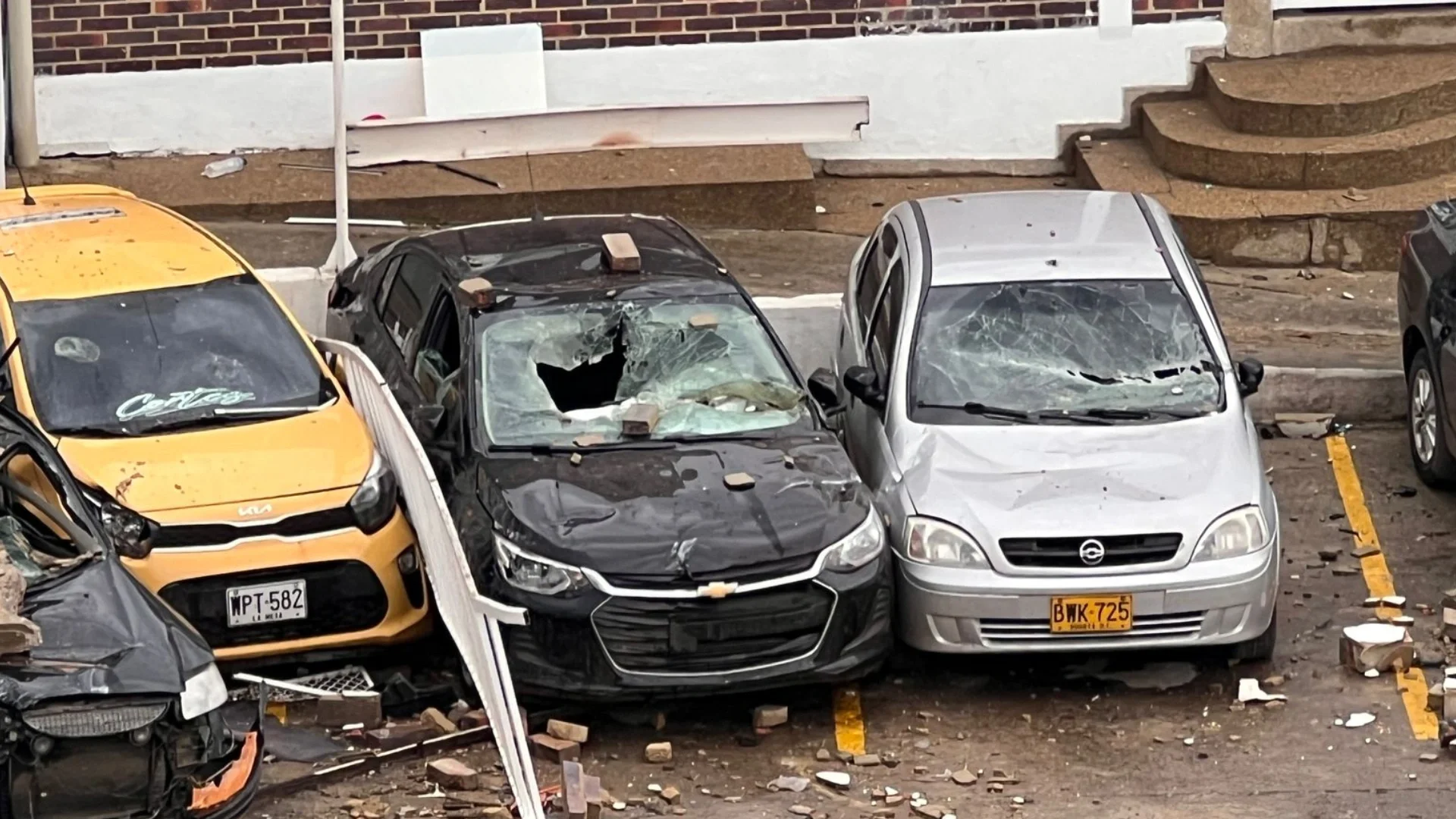 Las imágenes conocidas por este medio dejan ver el rastro de escombros producto del estallido y la onda expansiva que alcanzó no solo a los vehículos del parqueadero, sino también varias estructuras aledañas al centro vacacional.