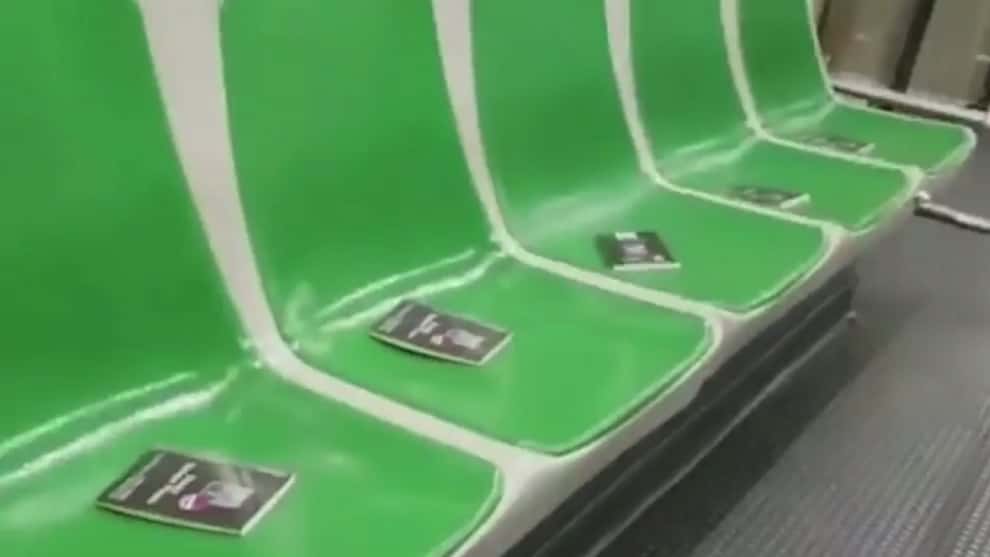 Hasta en las sillas de los vagones, los viajeros encontraron los obsequios, una manera de promover la lectura y de celebrar el día del idioma.