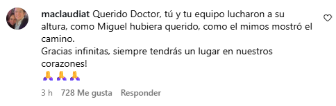 Entre ellos destacó el de María Claudia Tarazona, esposa de Miguel Uribe, quien escribió: “Querido Doctor, tú y tu equipo lucharon a su altura, como Miguel hubiera querido, como él mismo mostró el camino”.