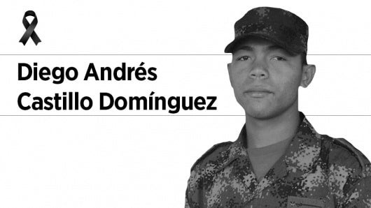 El Comando de la Fuerza de Tarea Quirón, adscrita a la Octava División del Ejército Nacional, informó de la muerte del soldado Diego Andrés Castillo Domínguez, de 19 años de edad, oriundo de Soledad, Atlántico.