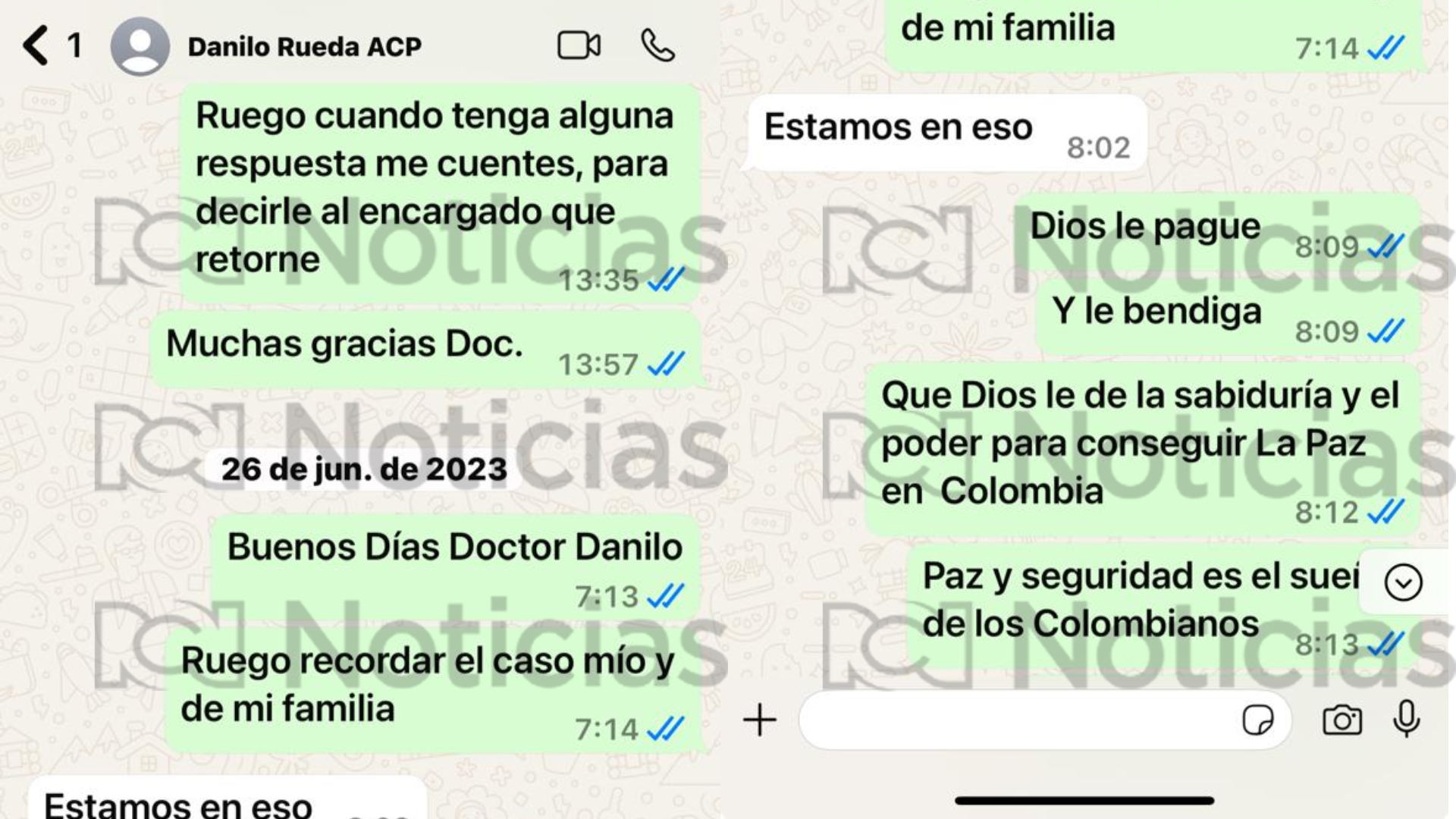 En dichas conversaciones fechadas en junio y julio del 2023, se evidenciaría que el uniformado escribió al entonces comisionado Danilo Rueda para denunciar lo que sería un caso de extorsión.
