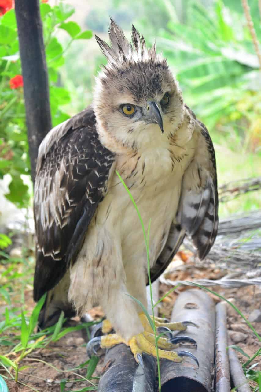 Aunque nunca había visto en la vida real una especie como esta, según él solo en televisión, su intución lo impulsó a ayudar y acertó, porque se trata de una especie endémica de Colombia, una águila crestada juvenil (Spizaetus isidori) que había llegado caminando hasta la finca debido a qué no podía volar.
