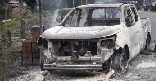 Dos de los funcionarios fallecieron incinerados dentro del vehículo. Se presume que el ataque haya sido realizado por el frente Óliver Sinisterra.