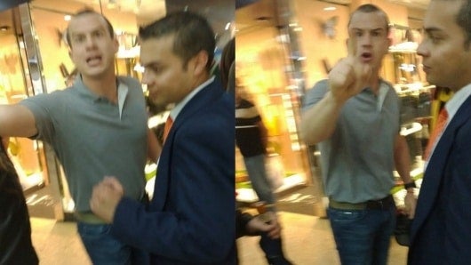 Finalmente llega el personal de seguridad del lugar para controlar la situación y se ve a uno de los jóvenes que abraza por la cintura a su pareja. Otro video muestra a una mujer que les grita pedófilos a los dos jóvenes.
