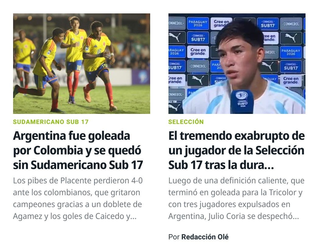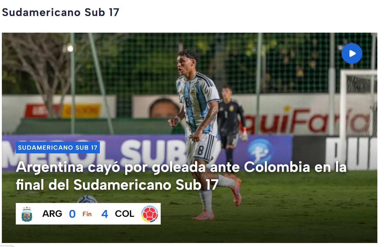 En ese contexto, el medio también destacó las declaraciones de un jugador argentino tras el partido, calificándolas con dureza: “El tremendo exabrupto de un jugador de la Selección Sub 17 tras la dura derrota ante Colombia en la final del Sudamericano”. Este señalamiento evidenció el impacto emocional que dejó la derrota en algunos futbolistas, así como la repercusión mediática que tuvieron sus palabras.
