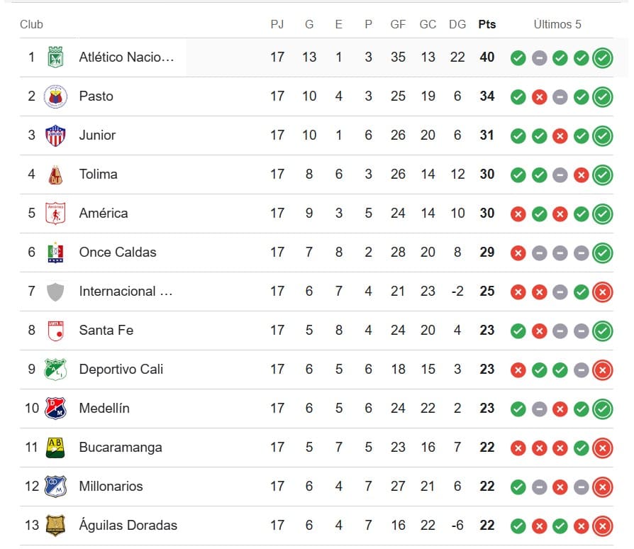 Mientras América celebra su clasificación, la lucha por los dos cupos restantes en el grupo de los ocho se torna cada vez más cerrada. Inter Bogotá y Santa Fe ocupan actualmente posiciones privilegiadas con 25 y 23 puntos respectivamente, pero aún no tienen asegurada su presencia en la siguiente fase.