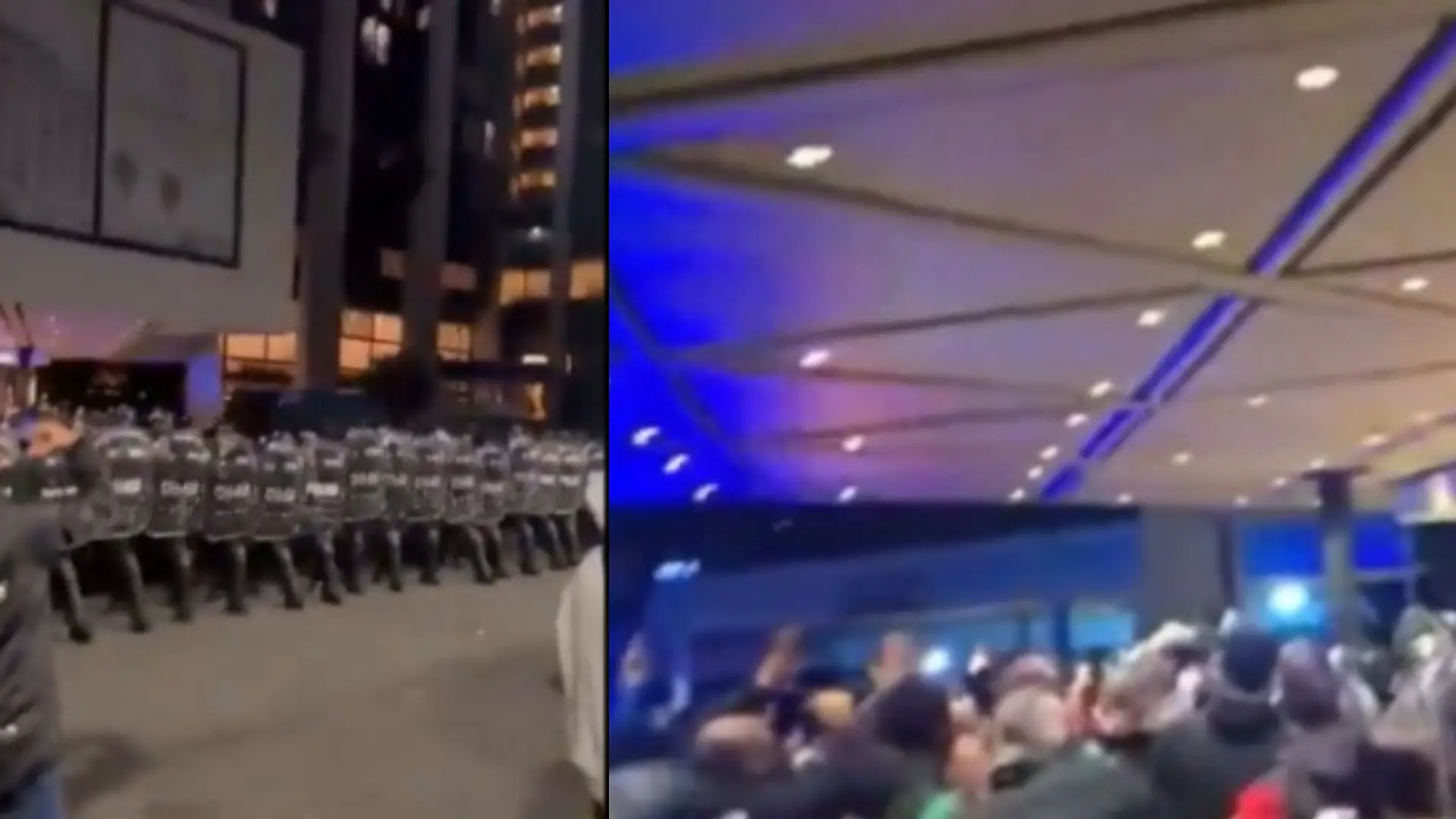 De acuerdo con lo que se ha registrado en los videos que se han publicado en redes sociales, la Policía de Buenos Aires llegó al hotel de concentración del Once Caldas y lanzó gases lacrimógenos.