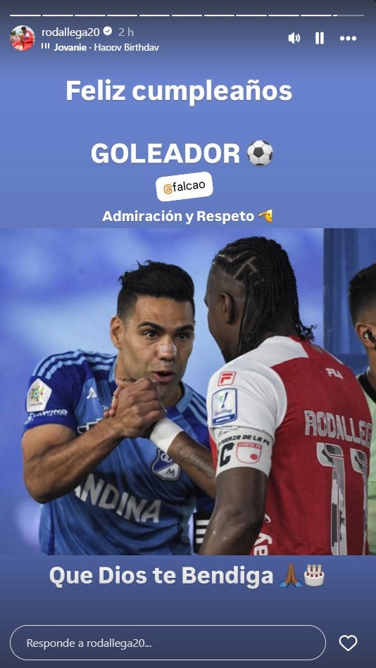 Delanteros como Dayro Moreno y Hugo Rodallega, dos de los máximos artilleros del campeonato local, compartieron historias en sus redes sociales con mensajes dedicados al ‘Tigre’. Ambos, protagonistas en sus respectivos equipos, no dudaron en expresar el respeto que sienten por Falcao, reconociendo la dimensión de su carrera y el ejemplo que ha representado para varias generaciones de futbolistas colombianos.