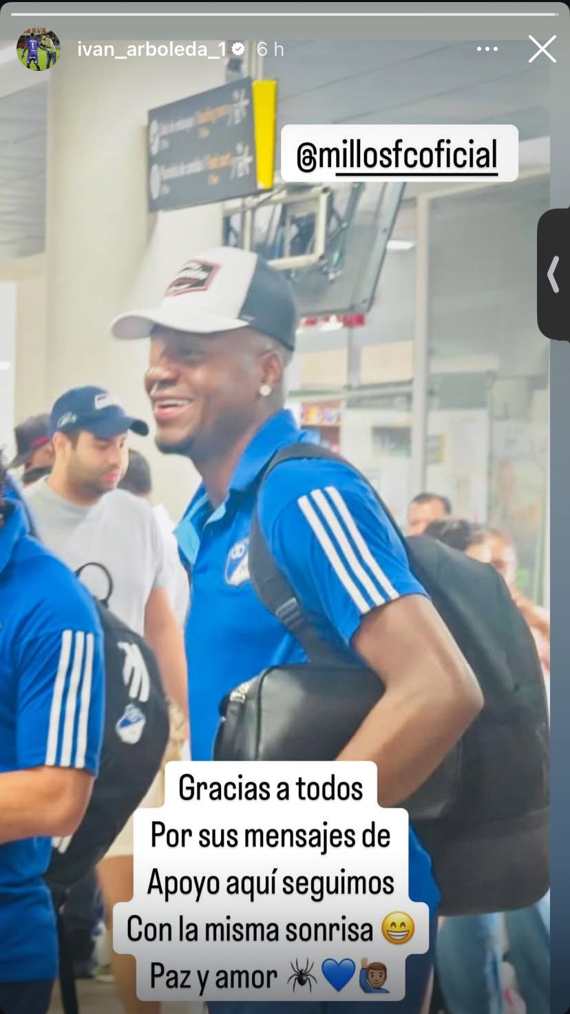 Sin embargo, además de la imagen, escribió un mensaje en el que le dio un parte de tranquilidad a la hinchada de Millonarios, pero también a sus amigos, conocidos y familiares.