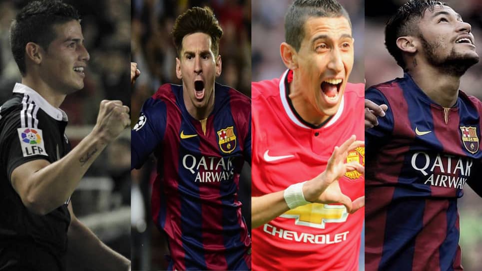 Cuatro de los 10 futbolistas más valiosos del mundo protagonizarán la próxima Copa América de Chile: los argentinos Lionel Messi y Ángel Di María, el brasileño Neymar y el colombiano James Rodríguez, valuados todos en la astronómica cifra de 325 millones de euros.