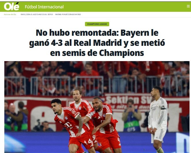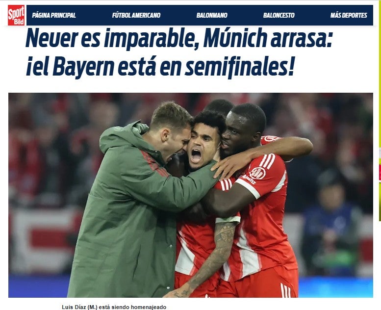 Luis Díaz y el Bayern Múnich eliminaron al Real Madrid de la Champions League y el colombiano estuvo en las principales portadas.