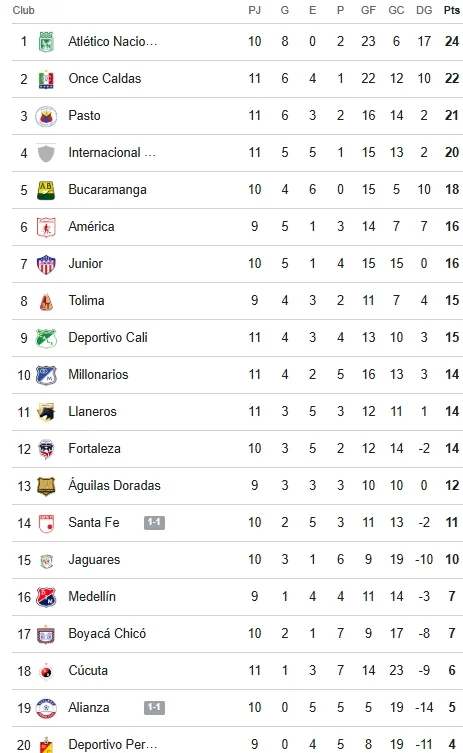 Tabla de posiciones de la Liga BetPlay