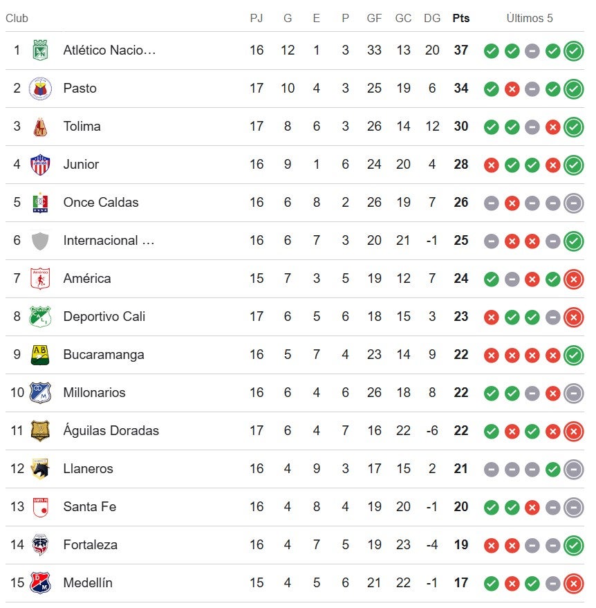 La victoria de Fortaleza fue celebrada por varios equipos de la Liga. Así se mueve la tabla de posiciones en esta fecha 17.