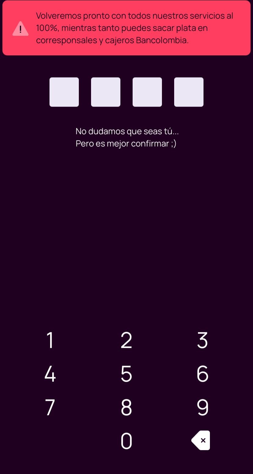 Y es que al abrir la aplicación se está mostrando un mensaje en el que se detalla que no están disponibles y que "volverán muy pronto con todos sus servicios al 100%". Pero, además, Nequi ha explicado cuál es la solución a la que pueden acudir los clientes en el caso de que necesiten hacer retiros de dinero.
