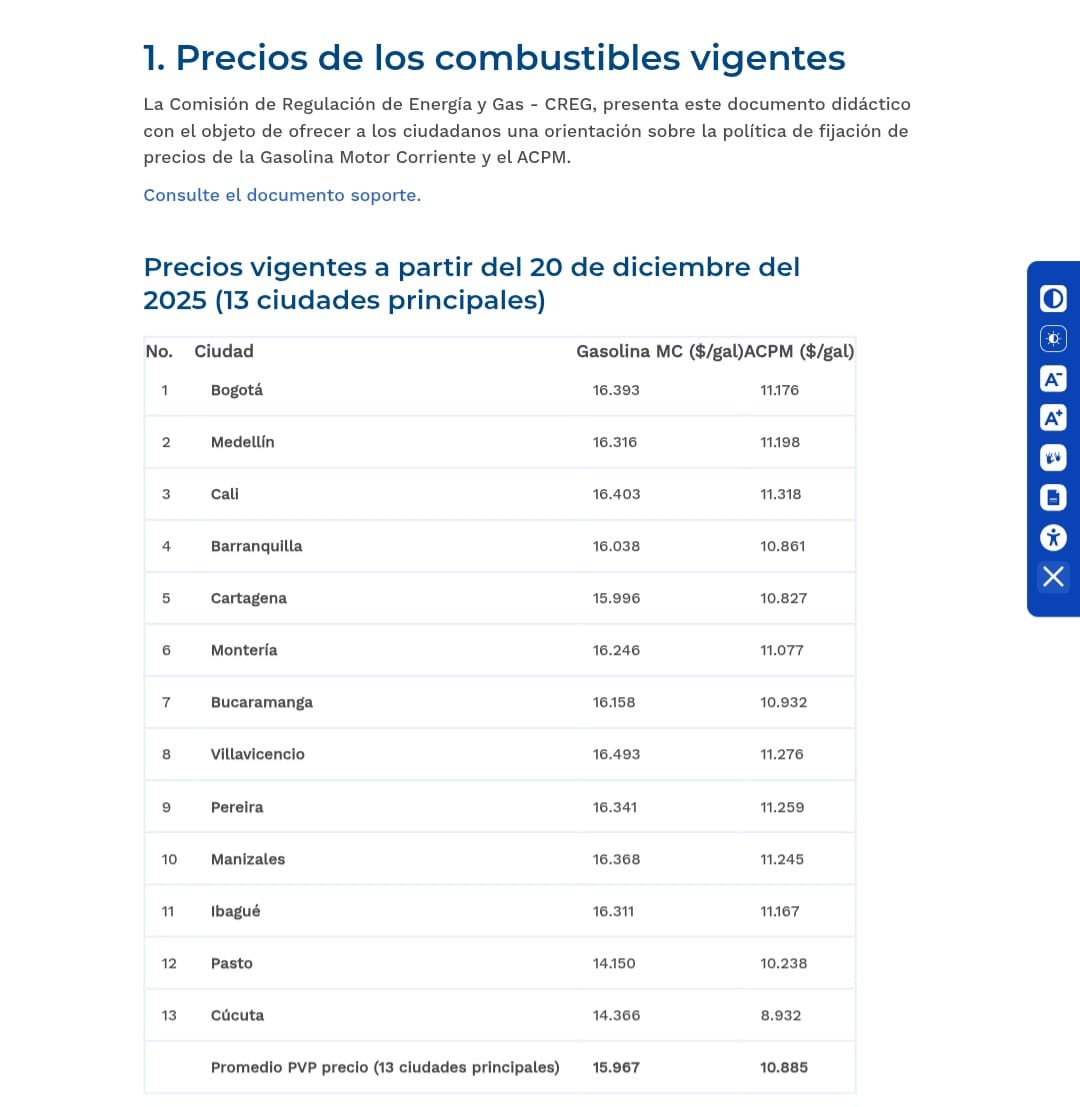 De acuerdo con una comunicación de la Comisión de Regulación de Energía y Gas, Creg, el precio del ACPM o diesel subió $100 pesos desde el 20 de diciembre.