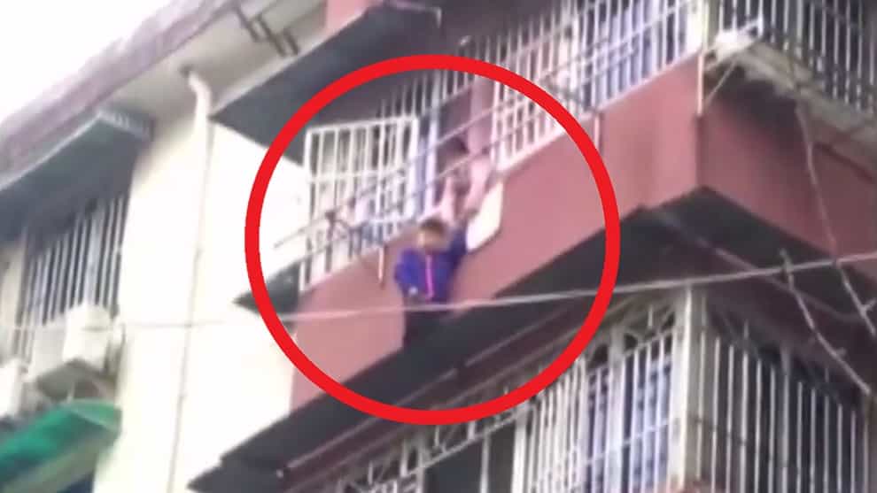 Las imágenes muestran a un pequeño colgando de los brazos de una niña desde un quinto piso de un edificio en la ciudad de Ningbo, en la provincia de Zhejiang al este de China.