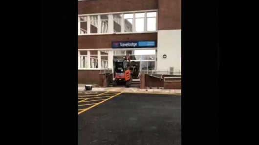 El sujeto irrumpió en la recepción del hotel accionando una excavadora y, una vez destrozó el lugar, se dio a la huida.