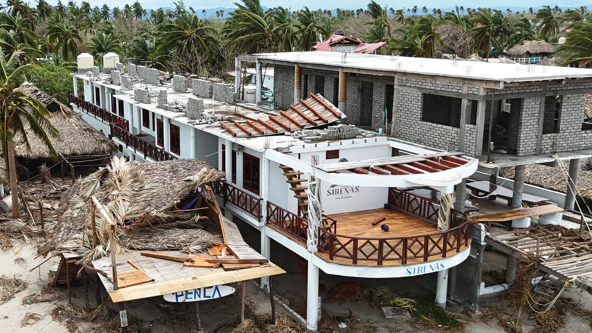 Las comunidades más cercanas a la costa, como Lagunas de Chacahua en Oaxaca, sufrieron severos daños. Los fuertes vientos destruyeron techos de palma de viviendas y negocios, mientras las calles quedaron completamente inundadas.