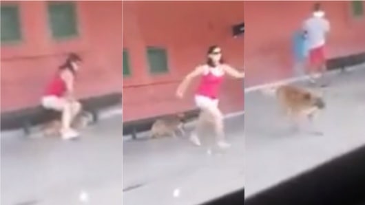 Un pasajero grabó el instante en que la mujer sale corriendo, aborda un tren y deja a su "mascota" en la estación.