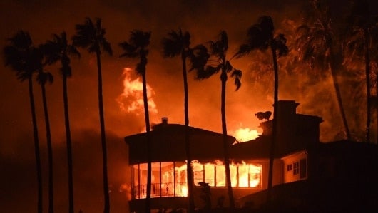 El incendio "Woosley" se ha propagado con velocidad amenazando a lo largo de la costa, provocando órdenes de evacuación, incluyendo la totalidad de la exclusiva Malibú, donde viven muchas celebridades de Hollywood.