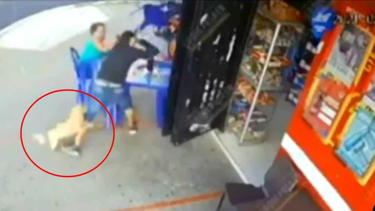 Dos mujeres estaban interactuando con sus celulares sentadas afuera de la tienda, mientras Chester descansaba, muy cerca de ellas; de repente un hombre que pasó por el lugar las intimidó con un arma blanca. Todo quedó registrado en una cámara de seguridad.