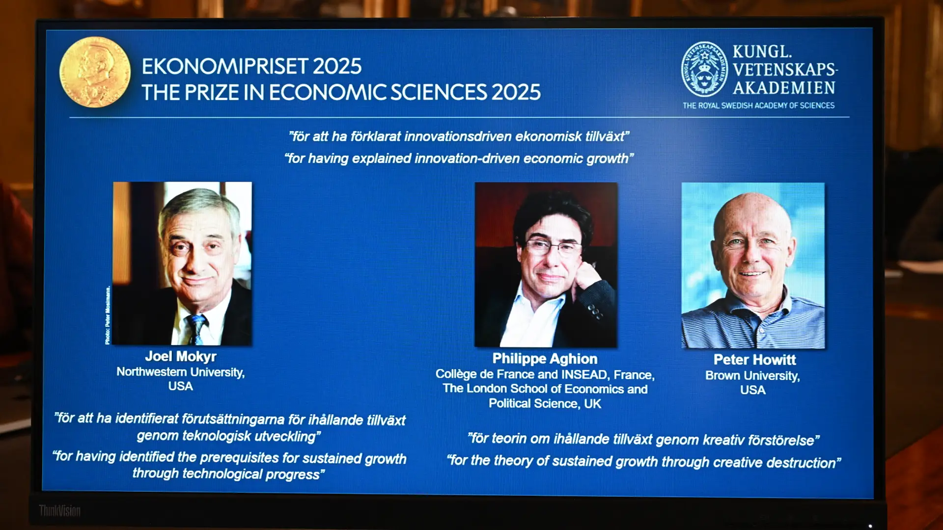 Joel Mokyr, Philippe Aghion y Peter Howitt fueron los ganadores del Nobel de Economía por sus estudios sobre la innovación y el crecimiento.