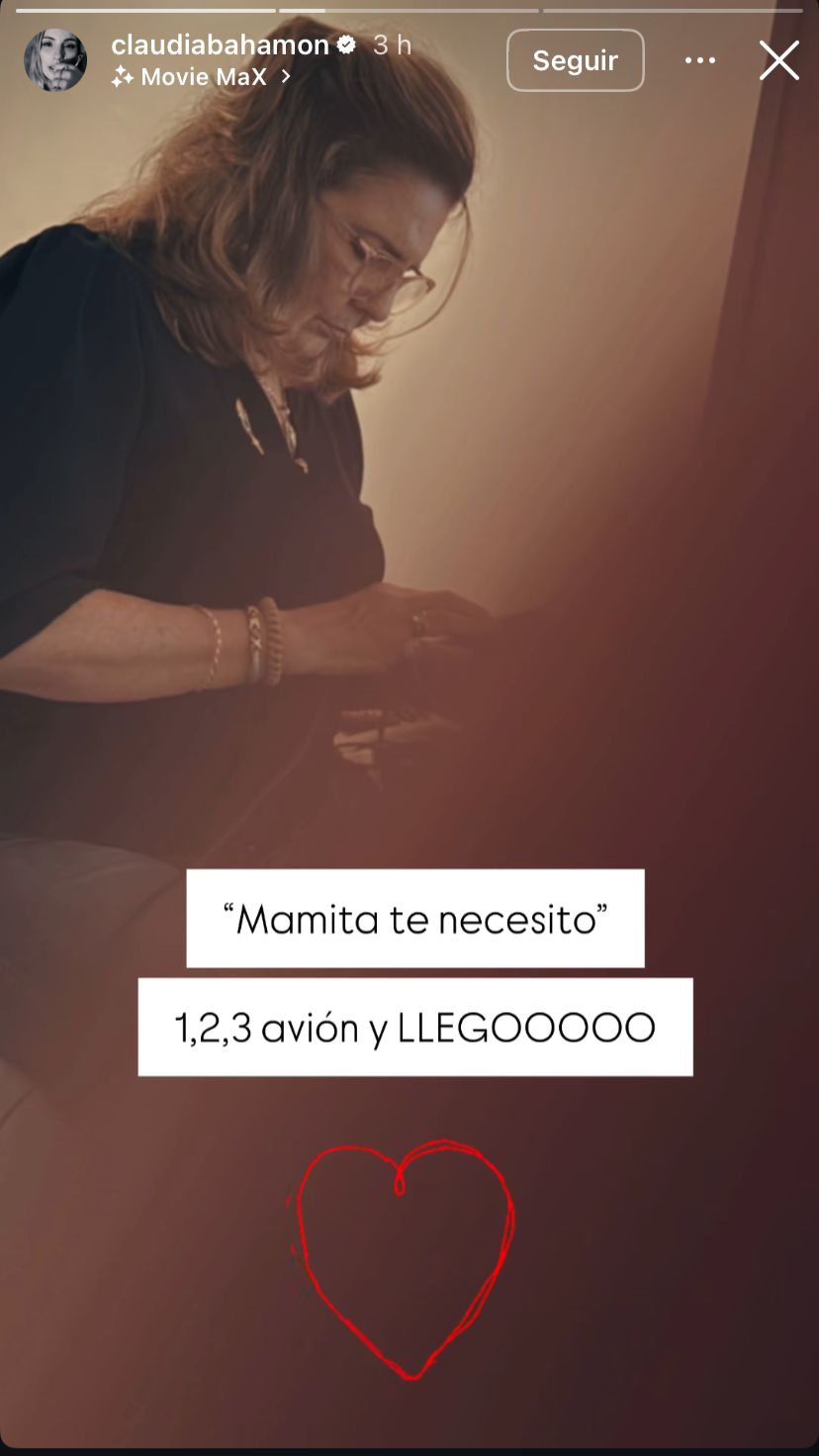 En una historia posterior que Claudia Bahamón subió en su Instagram, mostró que le dijo a su mamá que la necesitaba y que ella llegó de inmediato a cuidarla.