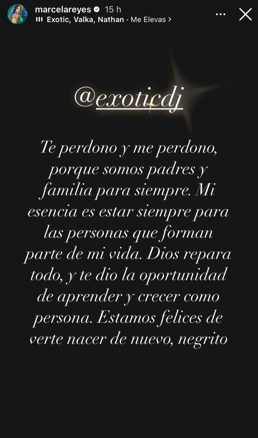"Me has demostrado mucho el valor de la familia. Te amo para toda la vida, Marcela Reyes", agregó Exotic.