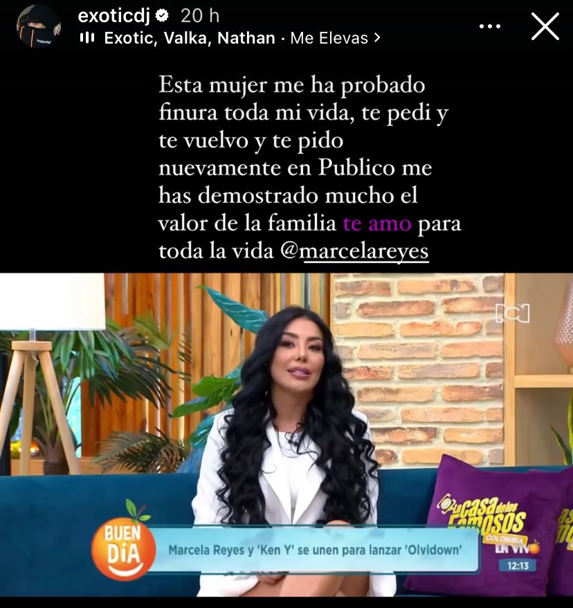 Tras su aparición en las redes durante el 23 de enero, DJ Exotic ha reconocido que está agradecido de por vida con Marcela Reyes por lo que ha hecho por él y que se siente afortunado de contar con ella en su vida.