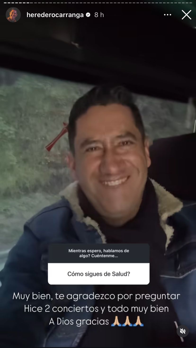 "Me siento muy bien, les agradezco por preguntar. Hice dos conciertos y todo salió muy bien. A Dios, gracias", escribió el cantante de carranga.