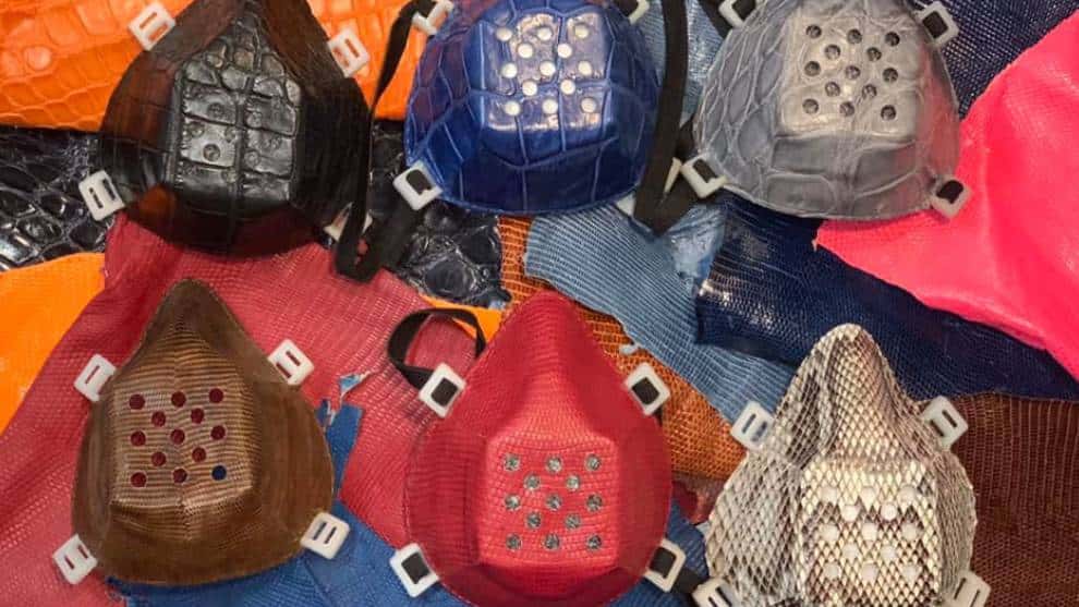 Brian Woods, un artesano de 63 años que hace toda clase de productos con pieles de reptiles, se percató de que la gente comenzaba a llevar mascarillas cada vez más creativas para protegerse de la pandemia, y decidió surfear la misma ola.