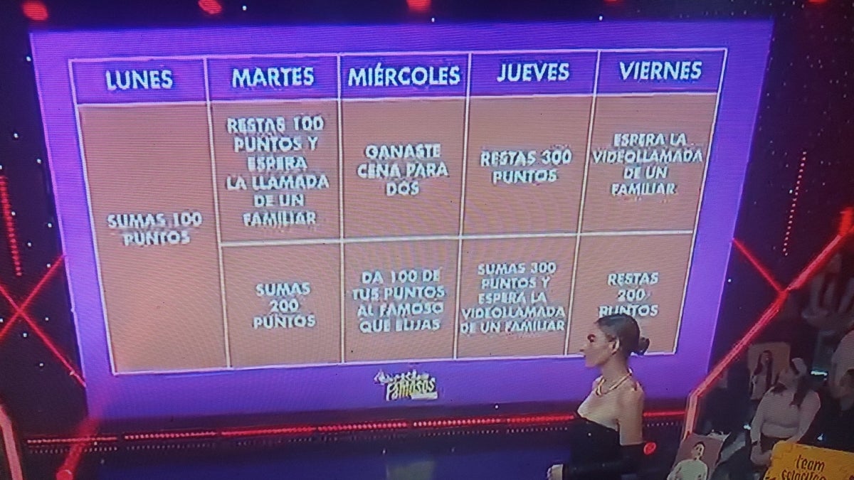 - Miércoles: ganaste cena para dos y da 100 de tus puntos al famoso que elijas.