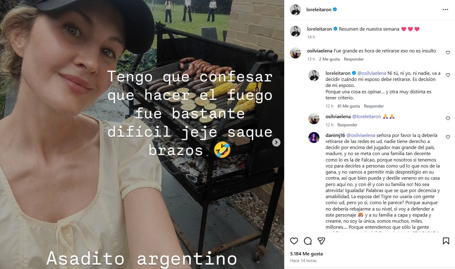 Lejos de ignorar el comentario, Lorelei Tarón optó por responder directamente, dejando un mensaje que rápidamente se viralizó. En su réplica, aseguró que nadie, más allá del propio futbolista, tiene la autoridad para determinar cuándo debe retirarse, marcando una diferencia entre opinar y emitir juicios sin fundamento.