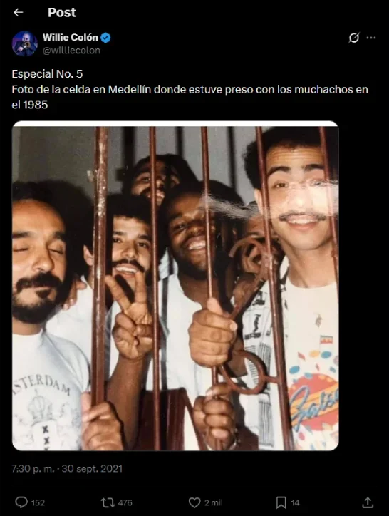 Tras el fallecimiento del reconocido salsero Willie Colón en la mañana de este 21 de febrero, en redes sociales muchos recordaron una de las anécdotas más conocidas del artista en Colombia: cuando fue detenido junto a toda su orquesta en Medellín.